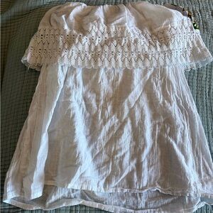 Embrace a vibrant look with this sunflower embroidered off-shoulder top. Orange and yellow flowers with lace detail. No tag. Probably small.