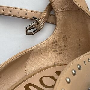 Sam Edelman Helen Heels Studded Eyelets Tan Nude Leather Ankle Straps Size 9.5