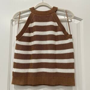 Old Navy Tan & White Knit Halter Stripe Sweater Tank – NWT, Size L Petite