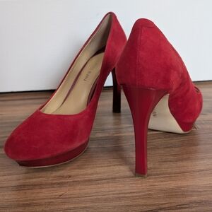 Gianni Bini Vintage Red Genuine Suede Platform Heels Y2K 7.5