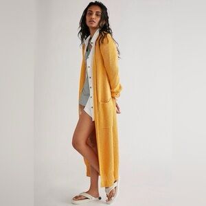 FREE PEOPLE It’s alright Maxi Knit Button Down Cardigan in Yellow