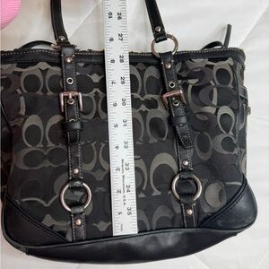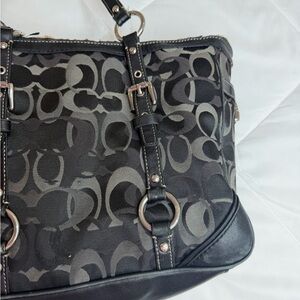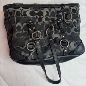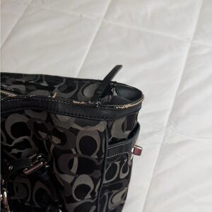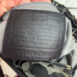 This bag has seen better days. Mainly the leather on the top is coming off or has some off. Interior is pretty clean and exterior fabric is not stained. Does not come with the dog tag.