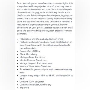 Jill Martin Oversized Sherpa Embroidered Hooded Lounger NWOT