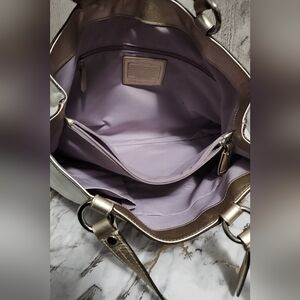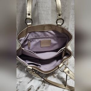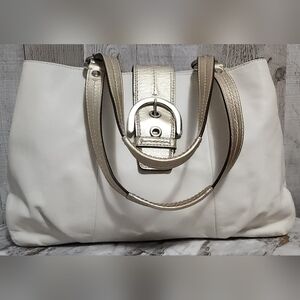 🌷Elegant Vintage Coach Soho East West womens purse in Cream off white with Gold Metallic handles design. Perfect for adding a touch of luxury to any outfit.