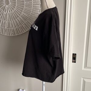 Printing has a distressed vintage look and the tee has a small hole as pictured, adding to that vintage flair.