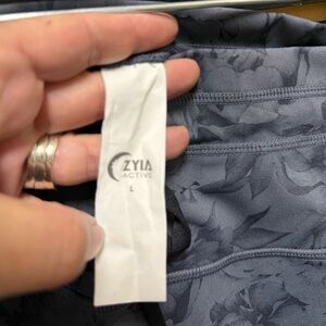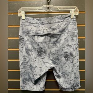 ZYIA Gray Floral High Rise Biker Shorts Size L Drawstring