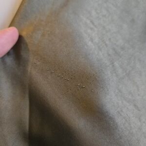Brand new with tags, however this does have 1 notable flaw which is a run on the fabric near the front bodice. Shown in a close-up photo and I'm also pointing to it from farther away so you can see that it's not noticeable from a normal distance, but want to note that it's there!