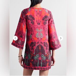 The colorful, tropical-inspired print of Cara Cara's 'Jaipur' tunic is designed exclusively in-house. It's cut from airy linen and has tasseled lace-up ties. Wear it as a coverup on vacation.