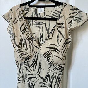 Y2K Fairweather Flutter Sleeve Blouse Womens L Sheer Chiffon Palm Floral Made USA Fairy