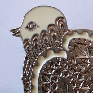 Neiman Marcus Bird Brooch Pin Silver Tone Cream Enamel