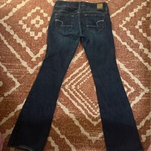 Chic dark blue flare jeans. Perfect for a trendy look. Comfortable fit.
