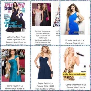 Alluring jersey gown with scoop neckline and soft gathers on the bust. The neckline and straps are accented with sparkling rhinestones and faux pearls. The back is a show stopper with a beautiful draped cowl. Side zipper closure.