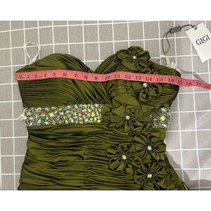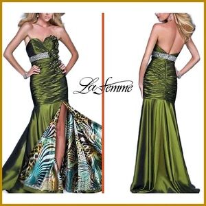Gigi by La Femme Olive Green Strapless Floral Embellished Gown | Dress