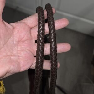 A timeless shoulder bag with a beautiful tapestry floral design. Rich burgundy tones. This purse is pre-loved and in good worn condition. See photos for condition.