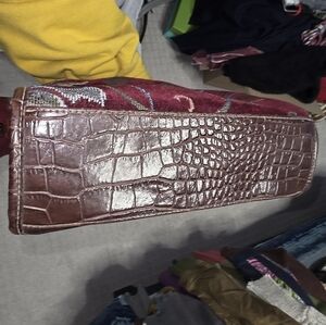 Burgundy Floral Tapestry Purse With Brown Faux Leather