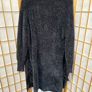 Chic black cardigan with open-front design. Ideal for layering. Adds elegance to any look.
