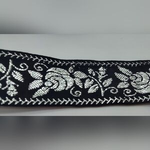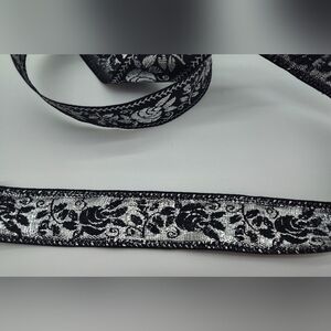Vintage Japanese Black Silver Rose Jacquard Ribbon 1.25 Luxury Trim Two (2) Yard