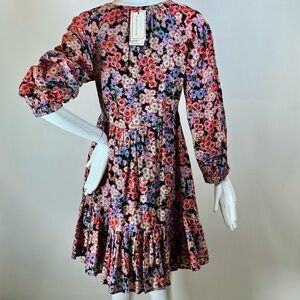 NWT BANJANAN Macaw Multicolor Billowy Lightweight Floral Mini Dress Size: Medium