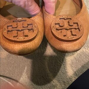 Elegant Tory Burch flats in rich brown leather. Perfect for versatile styling.