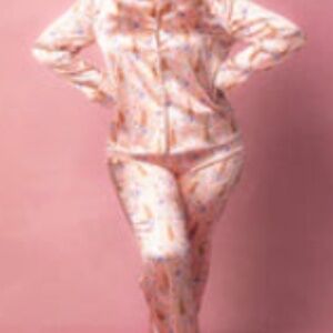 Ivy City Co Satin Bunny Pajama Set, includes button up top, pants with elastic waistband.
