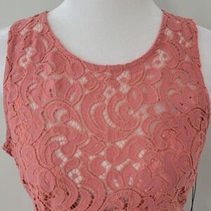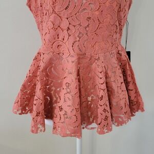 Haute Monde Womens Lacey Top LARGE Fairy Coquette Boho Sheer Peplum Summer Coral