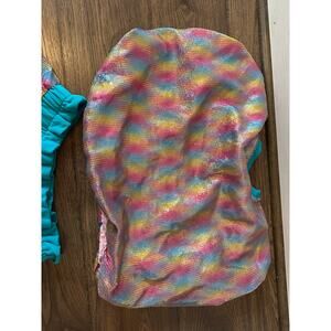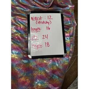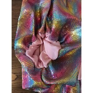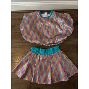 EUC Queen of Sparkles Teal Rainbow Sequin Bubble Top + Skort SET Sz Medium