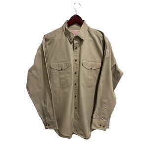 Filson Mens Khaki Work Shirt Button Down Utility Pocket Shirt Large
