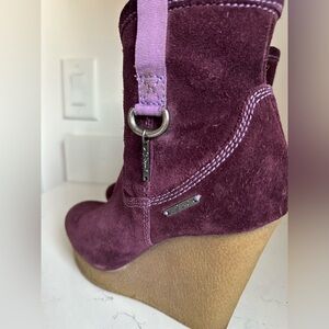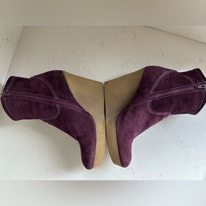 Diesel plum suede wedged boots in great condition. Zip up side, beautiful color, quality suede, size 9 true to size. Wedge height is 2.5 inches.