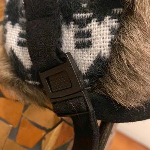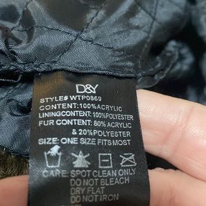 D&Y Trapper Hat. Faux Fur with black and white. Strap closure in front. Great Condition. Macy’s purchased.