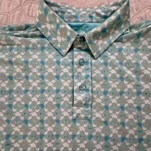 Straight Down Men’s Tropical Golf Polo Blue Orange Large short sleeve
