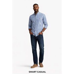 Ralph Lauren Slim Fit Blue Gingham Button Down Shirt Mens Large Cotton