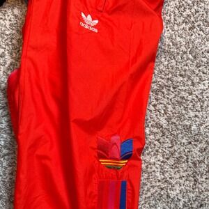 Adidas Men's Small Track Pants Red Colorful Trefoil Logo Stripes