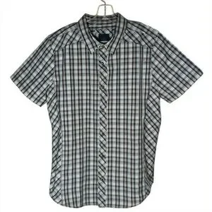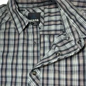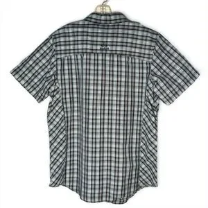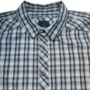 prAna Casual Short Sleeve Button Down Shirt Men's L Plaid Organic Cotton Blend