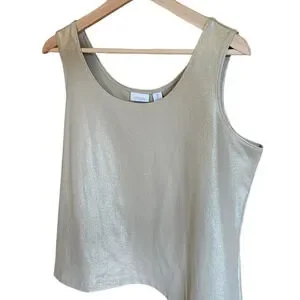 Chico’s Women’s Tank Top Metallic Shimmer Stretch Shell Gold Size 2 Large