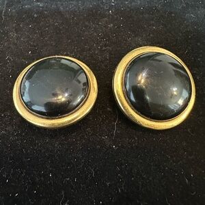 Liz Claiborne Vintage Black Gold Tone Clip-On Earrings Women