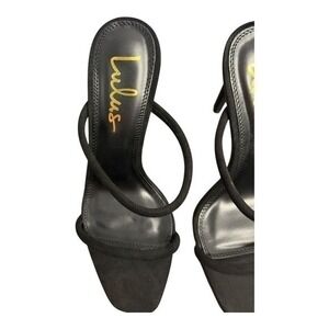 NIB Lulus Theyaa Black Faux Suede Square Toe High Heel Sandals Size 8