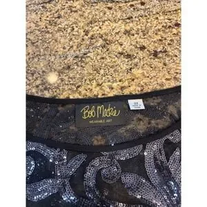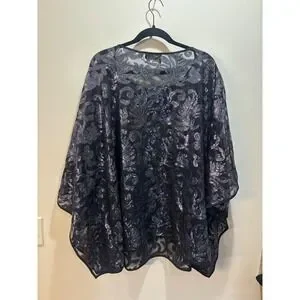 Bob Mackie Wearable Art Black Sequined Lace Poncho Top 3X Gunmetal Artsy