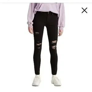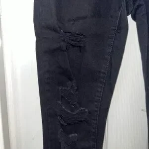 Stylish black skinny jeans. Features distressed detailing. Perfect for casual wear.