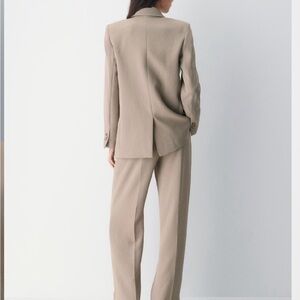 Elegant Aritzia blazer in a classic tan shade. Features a structured design with notched lapels. Perfect for both office and casual wear.
