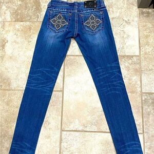 Miss Me Low Rise Skinny Jeans 27x31 Stretch Embroidered Pockets EUC