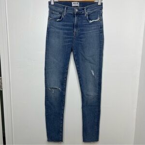 Wash: Pentacle Wash. Distressed with a Raw Hem. Skinny with a High Rise. Excellent Condition. No Flaws. Size 27
