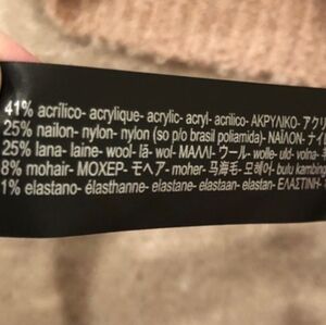 Super soft and cozy v neck sweater with faux fur accented pockets. The fabric tag is missing but I've included a picture of one from online.