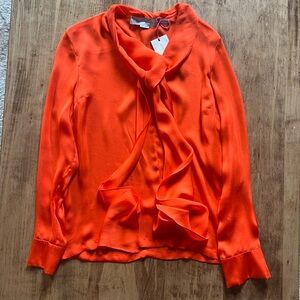 An elegant and stylish blouse by designer Stella McCartney featuring a beautiful tie detail that can be worn several ways. Brand new with tags and made with luxury silk. There are small imperfections hence the price but none are noticeable when worn.