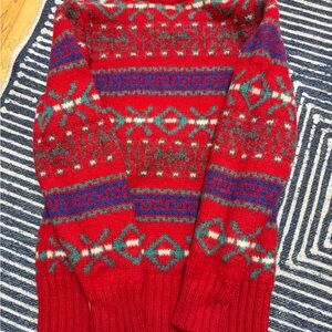 Ralph Lauren Women’s 100% Wool Red Patterned Crewneck Sweater