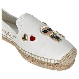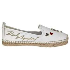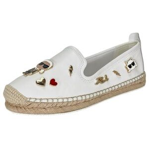 Karl Lagerfeld Michaela Emblem Studded White Leather Womens Flats Size 9.5M