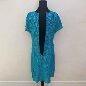 Cerulean sea blue shift dress with small white flower floral design pattern