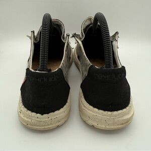 These Hey Dude Wendy slip-on flats feature a stylish leopard print. The shoes are both lightweight and comfortable, making them perfect for daily wear. See photos for signs of wear.