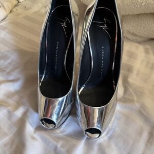 Giuseppe Zanotti Shiny Silver Peep-Toe Heels