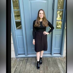 This black skirt is an XL. Photo of model is from brand website. Has stretchy waistband. This skirt is no longer in production by company.