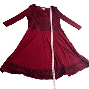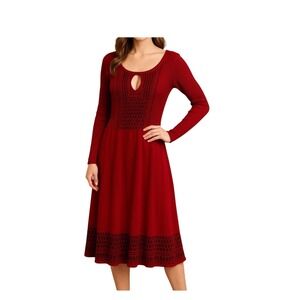 Olive + Oak Burgundy Knit Sweater Dress Keyhole Neck Geometric Pattern Midi L